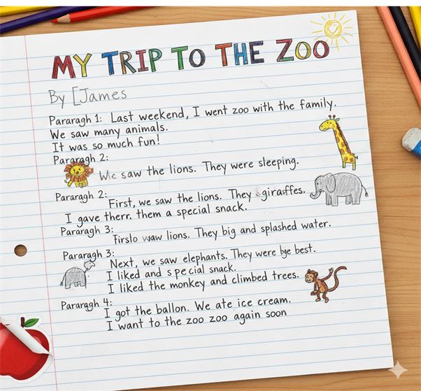 Kids write essays mainly on personal topics such as “My Dog”, “My Childhood”, and similar topics. These essays are not professional or do not follow proper structure. It depends on the kids’ thoughts, ideas, emotional reflections, and personal opinions. The main purpose of kids’ essays is to develop some skills in them, such as grammar, punctuation, and vocabulary.