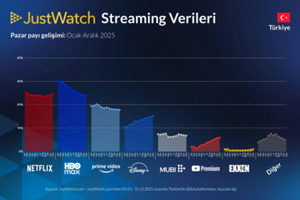 2025 yılı boyunca Türkiye’de dijital yayın platformları arasındaki rekabet hız kesmeden devam etti. Streaming rehberi JustWatch tarafından yayımlanan 2025 4. çeyrek pazar payı raporu, Türkiye’deki kullanıcıların hangi platformlara yöneldiğini ve pazarın nasıl değiştiğini ortaya koyuyor.